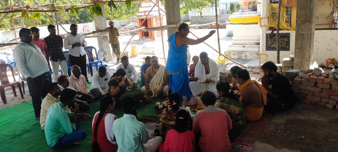 ఓదెల మండలంలోని పోత్కపల్లి గ్రామంలో శుక్రవారం రోజున నూతనంగా నిర్మిస్తున్న శ్రీ భవాని సహిత మహా లింగేశ్వర ఆలయం,ద్వార బంధనం,(గడప)వేద మంత్రాలతో ప్రతిష్టించడం జరిగింది.ఈ కార్యక్రమంలో పూజారి మల్లోజుల శ్రీనివాస శర్మ, గ్రామ సర్పంచ్ ఆళ్ల రాజిరెడ్డి,పుల్లూరి రాంబాబు,తాడూరి భాను ప్రకాష్ , శనిగరపు రమేష్,తోకల తిరుపతిరెడ్డి,పుల్లురి చంద్రమోహన్ దంపతులు మరియు వార్డు సభ్యులు ఆళ్ళ శివారెడ్డి మాజీ ఎంపిటిసి అంబాల కొమురయ్య మాచర్ల సాయిలు,వంగ మహేష్ యాదవ్ మరియు గ్రామస్థులు తదితరులు పాల్గొన్నారు.