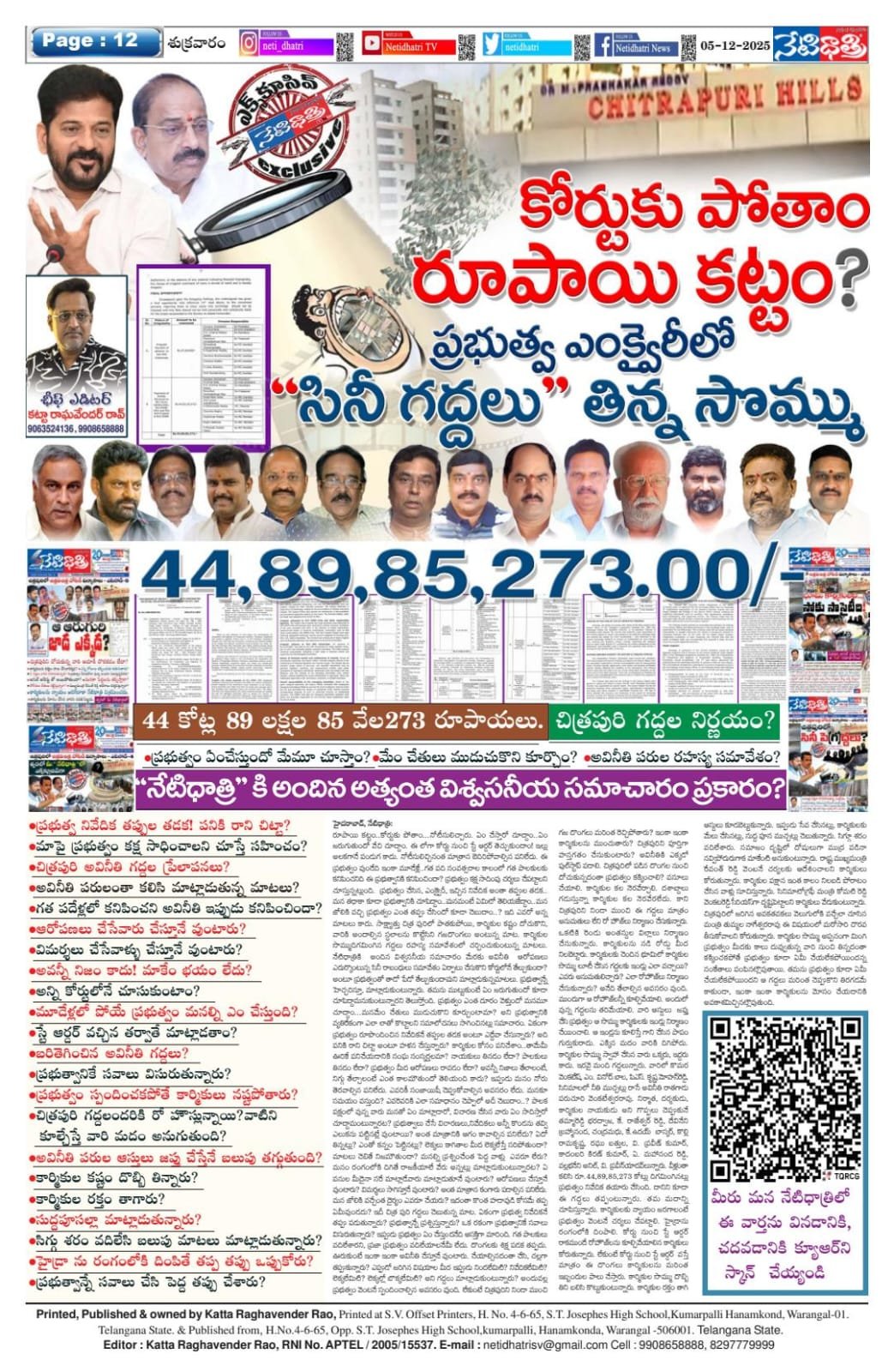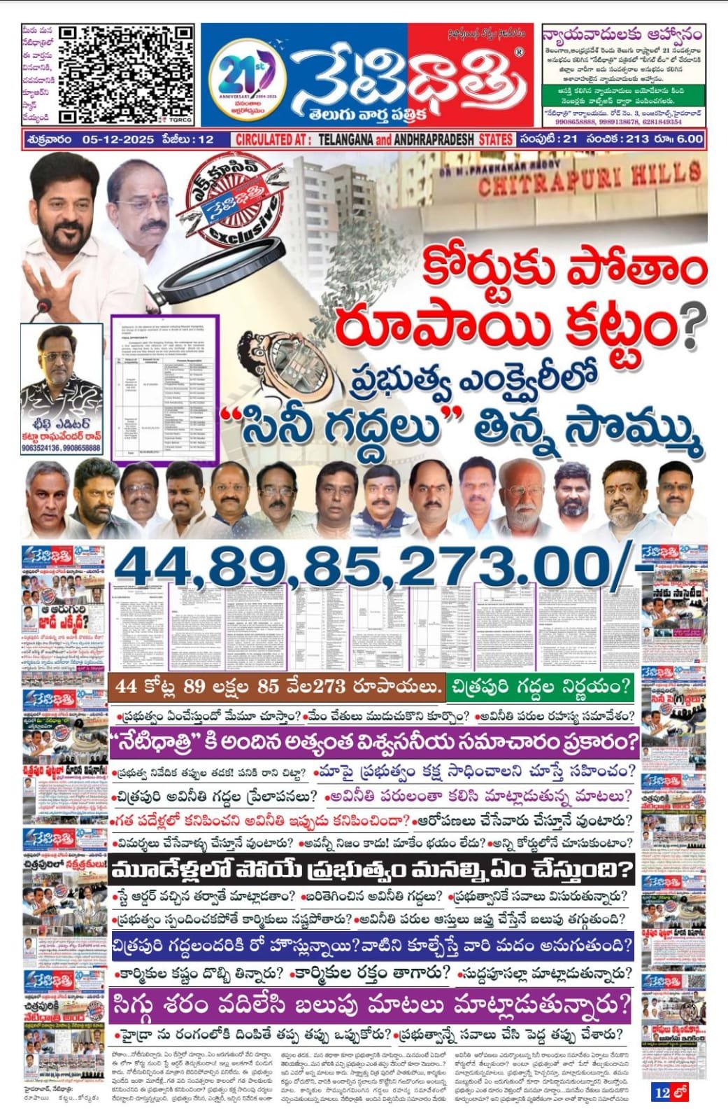 రూపాయి కట్టం..కోర్టుకు పోతాం…నోటీసులిచ్చారు. ఏం చేస్తారో చూద్దాం..ఏం జరుగుతుందో వేచి చూద్దాం. ఈ లోగా కోర్టు నుంచి స్టే ఆర్డర్ తెచ్చుకుందాం! ఇల్లు అలకగానే పండుగ కాదు. నోటీసులిచ్చినంత మాత్రాన బెదిరిపోవాల్సిన పనిలేదు. ఈ ప్రభుత్వం వుండేది ఇంకా మూడేళ్లే..గత పది సంవత్సరాల కాలంలో గత పాలకులకు కనిపించనిది ఈ ప్రభుత్వానికి కనిపించిందా? ప్రభుత్వం కక్ష సాదింపు చర్యలు చేపట్టాలని చూస్తున్నట్లుంది. ప్రభుత్వం చేసిన, ఎంక్వైరీ, ఇచ్చిన నివేదిక అంతా తప్పుల తడక.. మన తఢాకా కూడా ప్రభుత్వానికి చూపిద్దాం..మనమంటే ఏమిటో తెలియజేద్దాం..మన జోలికి వచ్చి ప్రభుత్వం ఎంత తప్పు చేసిందో కూడా చెబుదాం..? ఇది ఎవరో అన్న మాటలు కాదు. సాక్ష్యాత్తు చిత్ర పురిలో పాతకుపోయి, కార్మికుల కష్టం దోచుకొని, వారికి అందాల్సిన స్ధలాలను కొట్టేసిని గజదొంగలు అంటున్న మాట. కార్మికుల సొమ్ముదిగమింగిన గద్దలు రహస్య సమావేశంలో చర్చించుకుంటున్న మాటలు. నేటిధాత్రికి అందిన విశ్వసనీయ సమాచారం మేరకు అవినీతి ఆరోపణలు ఎదుర్కొంటున్న సినీ రాబంధులు సమావేశం ఏర్పాటు చేసుకొని కోర్టులోనే తేల్చుకుందా? అంటూ ప్రభుత్వంతో తాడో పేడో తేల్చుకుందామని మాట్లాడుకున్నమాటలు. ప్రభుత్వాన్నే హెచ్చరిస్తూ, మాట్లాడుకుంటున్నారు. తమను ముట్టుకుంటే ఏం జరుగుతుందో కూడా చూపిద్దామనుకుంటున్నారని తెలుస్తోంది. ప్రభుత్వం ఎంత దూరం వెళ్తుందో మనమూ చూద్దాం…మనమేం చేతులు ముడుచుకొని కూర్చుంటామా? అని ప్రభుత్వానికి వ్యతిరేకంగా ఎలా లాతో కొట్టాలని సమాలోచనలు సాగించినట్లు సమాచారం. ఏకంగా ప్రభుత్వం రూపొందించిన నివేదికనే తప్పుల తడక అంటూ ఎద్దేవా చేసున్నారు? అది పనికి రాని చిట్టా అంటూ హళన చేస్తున్నారు? కార్మికుల కోసం పనిచేశాం..తామేమీ ఊరికే పనిచేయడానికి సంఘ సంస్కర్తలమా? నాయకులు తినడం లేదా? పాలకులు తినడం లేదా? ప్రభుత్వం మీద ఆరోపణలు రావడం లేదా? అవన్నీ నిజాలు తేలాలంటే, నిగ్గు తేల్చాలంటే ఎంత కాలమౌతుందో తెలియంది కాదు? ఇప్పుడు మనం నోరు తెరవాల్సిన పనిలేదు. ఎవరికీ సంజాయిషీ చెప్పుకోవాల్సిన అవసరం లేదు. మనకూ సమయం వస్తుంది? ఎవరెవరికి ఎలా సమాధానం చెప్పాలో అదీ చెబుదాం..? పాలక పక్షంలో వున్న వారు మనతో ఏం మాట్లాడారో, విచారణ చేసిన వారు ఏం సాదిస్తారో చూద్దామంటున్నారట? ప్రభుత్వాలు చేసే విచారణలు,నివేదికలు అన్నీ కొండను తవ్వి ఎలుకను పట్టినట్లే వుంటాయి? అంత మాత్రానికి ఆగం కావాల్సిన పనిలేదు? ఏదో తిన్నట్లు? ఎంతో కన్నం పెట్టినట్లు? లెక్కలు కాగితాల మీద లెక్కలేస్తే సరిపోతుందా? మాటలు చెబితే నిజమౌతుందా? మనల్ని ప్రశ్నించేంత పెద్ద వాళ్లు ఎవరూ లేరు? మనం రంగంలోకి దిగితే రాజకీయాలే వేరు అన్నట్లు మాట్లాడుకుంటున్నారట? ఏ పనుల మీదైనా సరే మాట్లాడేవారు మా