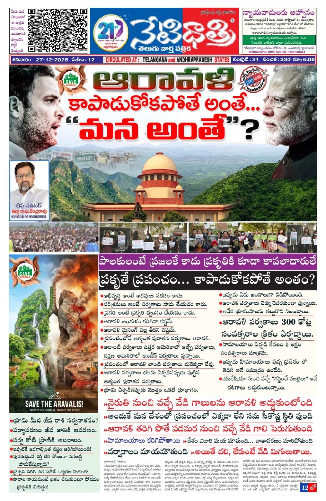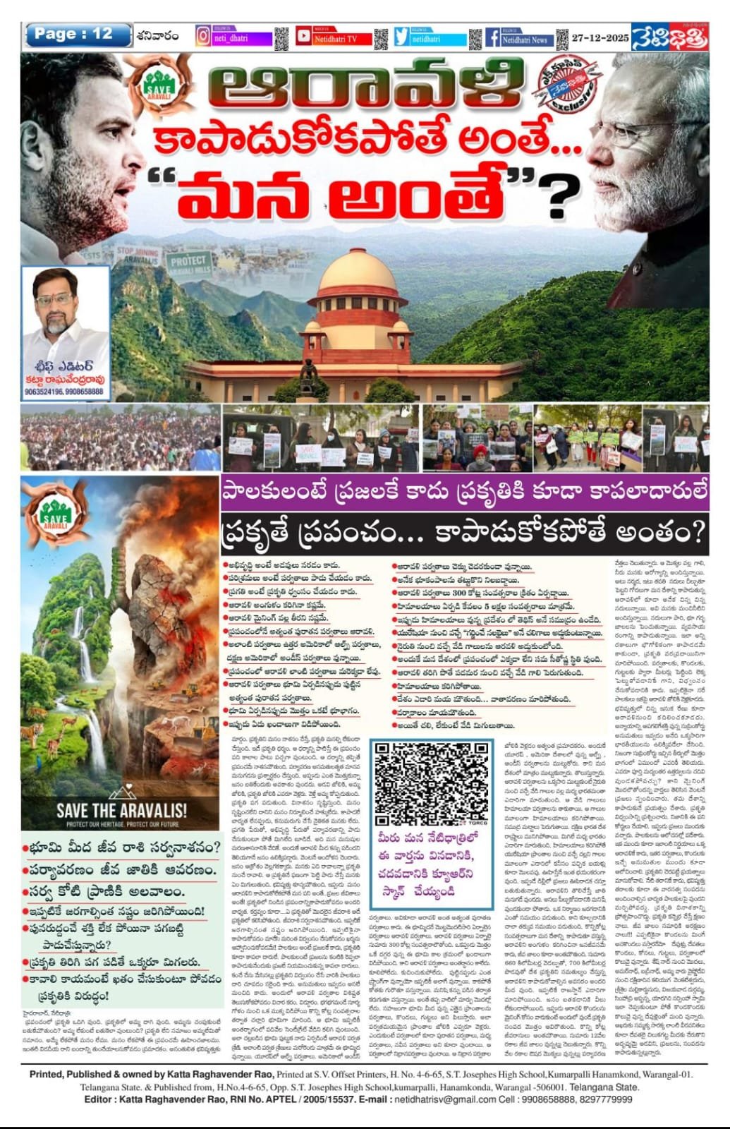 ప్రపంచంలో ప్రకృతి ఒదిగి వుంది. ప్రకృతిలో అమ్మ దాగి వుంది. అమ్మను చంపుకుంటే బతుకేమౌతుంది? అమ్మ లేకుంటే బతుకెలా వుంటుంది? ప్రకృతి లేని సమాజం అమ్మలేమితో సమానం. అమ్మే లేకపోతే మనం లేము. మనం లేకపోతే ఈ ప్రపంచమే ఊహించజాలము. ఇంతటి విడదీయ రాని బందాన్ని తుంచేయాలనుకోవడం ప్రమాదకం. అసంతులిత భవిష్యత్తుకు మార్గం. ప్రకృతిని మనం నాశనం చేస్తే, ప్రకృతి మనల్ని లేకుండా చేస్తుంది. ఇదే ప్రకృతి ధర్మం. ఆ ధర్మాన్ని పాటిస్తే ఈ ప్రపంచం పది కాలాల పాటు పచ్చగా వుంటుంది. ఆ దర్మాన్ని తప్పితే ప్రపంచమే నాశనమౌతుంది. పర్యావరణ అసమతులత్యత మానవ మనుగడను ప్రశ్నార్దకం చేస్తుంది. అప్పుడు ఎంత మొత్తుకున్నా జనం బతికేందుకు అవకాశం వుండదు. అడవి జోలికి, అమ్మ జోలికి, ప్రకృతి జోలికి ఎవరూ వెళ్లరు. వెళ్తే అమ్మ కోప్పడుతుంది. ప్రకృతి పగ పడుతుంది. వినాశనం సృష్టిస్తుంది. మనం సృష్టించలేని దానిని మనం నిర్మూలించే హక్కులేదు. కాపాడలే బాద్యత లేనప్పుడు, కనుమరుగు చేసే నైతికత మనకు లేదు. ప్రగతి పేరుతో, అభివృద్ది పేరుతో పర్యావరణాన్ని పాడు చేసుకుంటూ పోతే మిగిలేది బూడిదే. అది మన మనుషుల మరణశాసనానికి వేదికే. అందుకే ఆరావళి మీద కన్ను పడిరదని తెలియగానే జనం ఉలిక్కిపడ్డారు. వెంటనే ఆందోళన చెందారు. జనం ఆక్రోశం వెల్లగకక్కారు. మనకు ఏది రావాలన్నా ప్రకృతి నుంచే రావాలి. ఆ ప్రకృతినే ఫణంగా పెట్టి పాడు చేస్తే మనకు ఏం మిగులుతుంది. భవిష్యత్తు శూన్యమౌతుంది. ఇప్పుడు మనం ఆరావళిని కాపాడుకోలేకపోతే మన పని అంతే..ప్రజల జీవితాలు అంతే! ప్రకృతిలో నిండిన ప్రపంచాన్నికాపాడుకోవడం అందరి బాధ్యత. కర్తవ్యం కూడా…ఏ ప్రకృతితో మొదలైన జీవరాశి ఆదే ప్రకృతిలో కలిసిపోతుంది. జీవరాశి సర్వనాశనమౌతుంది. ఇప్పటికే జరగాల్సినంత నష్టం జరిగిపోయింది. ఇప్పటికైనా కాపాడుకోవడం మానేసి మరింత విద్వంసం చేసుకోవడం ఖర్మను ఆహ్వానించుకోవడమే!! పాలకులు అంటే ప్రజలకే కాదు, ప్రకృతికి కూడా కాపలా దారులే. పాలకులంటే ప్రజలను కంటికి రెప్పలా కాపాడుకునేందుకు ప్రజలే నియమించుకున్న కాపలా దారులు. కంచే చేను మేసినట్లు ప్రకృతిని విద్వంసం చేసే వారికి పాలకులు దారి చూపడం సరైంది కాదు. అనుమతులు ఇవ్వడం అసలే మంచిది కాదు. అందులో ఆరావళి పర్వతాల విశిష్టత తెలుసుకోకపోవడం విచార కరం. విడ్డూరం. భగభగమండే సూర్య గోళం నుంచి ఒక ముక్క విడిపోయి కొన్ని కోట్ల సంవత్సరాల తర్వాత చల్లారి భూమిగా మారింది. ఆ భూమి ఇప్పటికీ అంతర్భాగంలో పదివేల సెంటీగ్రేట్ వేడిని కలిగి వుంటుంది. అలా చల్లబడిన భూమి పుట్టుక నాడు ఏర్పడిరదే ఆరావళి పర్వత శ్రేణి. అలాంటి పర్వత శ్రేణులు మరోరెండు మాత్రమే ఈ భూమ్మిద వున్నాయి. యూరప్లో ఆల్స్ఫ్ పర్వతాలు. అమెరికాలో ఆండీస్ పర్వతాలు. అవికూడా ఆరావళి అంత అత్యంత పురాతణ 