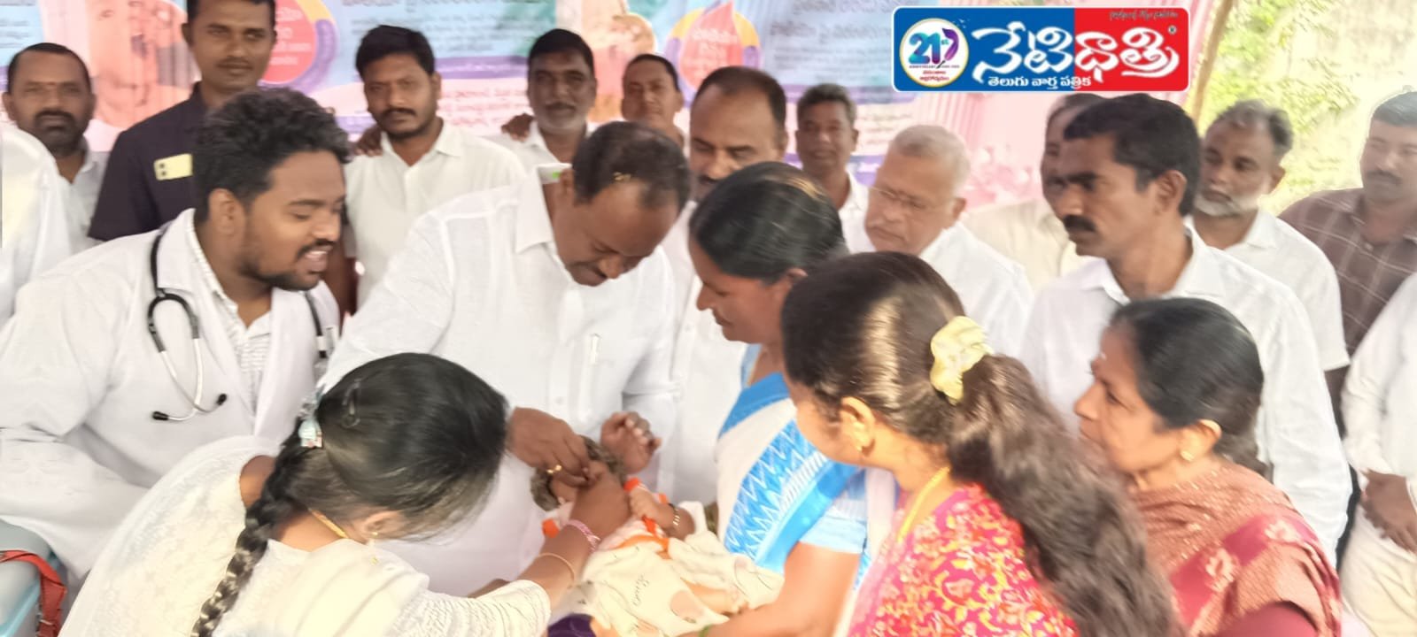 అనంతరం చిన్నారులకు స్వయంగా పోలియో చుక్కలు వేస్తూ, చిన్నారుల ఆరోగ్యకరమైన భవిష్యత్తు కోసం ప్రతి తల్లిదం డ్రులు తమ పిల్లలకు రెండు పోలియో చుక్కలు వేయాలని పిలుపు నిచ్చారు ఎమ్మెల్యే మాట్లాడుతూ పోలియో రహిత సమాజం నిర్మాణం మన అందరి బాధ్యత
