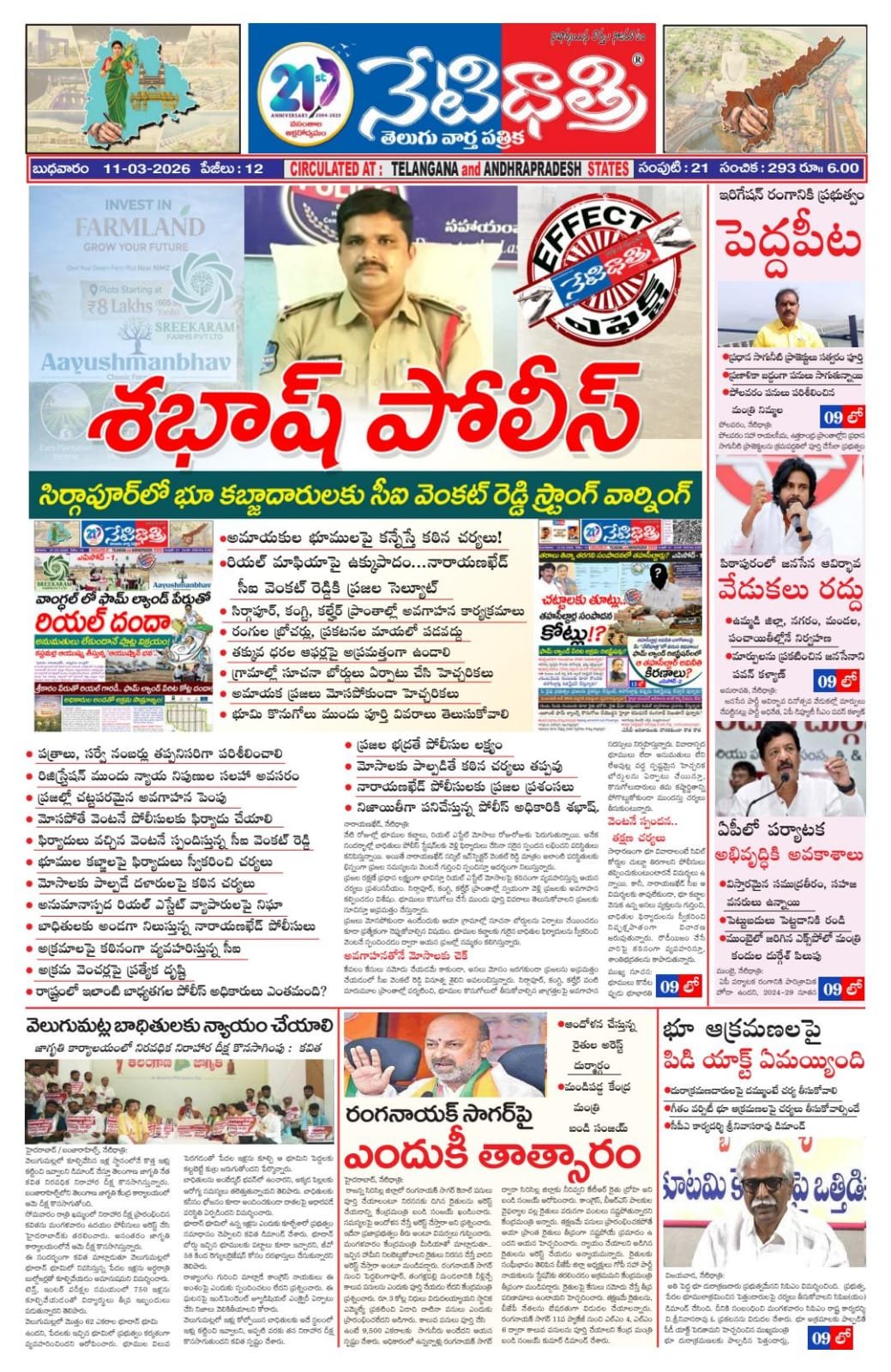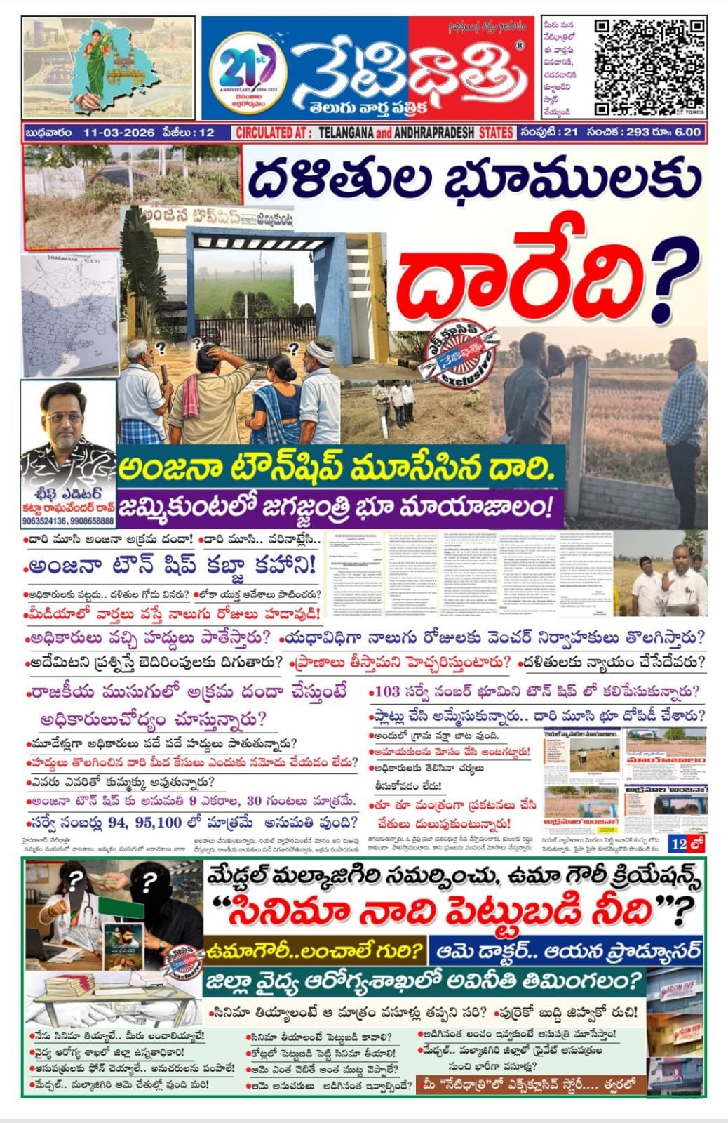 నమ్మకం ముసుగులో నాటకాలు, అమ్మకం ముసుగులో అరాచకాలు బాగా అýవాటు చేసుకుంటున్నారు. రియల్ వ్యాపారమంటేనే మోసం అని రుజువు చేస్తున్నారు. రాజకీయ నాయకులు మరీ దిగజారిపోతున్నారు. అక్రమ సంపాదనలకు తెగబడుతున్నారు. ఓ వైపు ప్రజా ప్రతినిధులై సేవ చేస్తామంటారు. ప్రజలకు కష్టం రాకుండా పాలిస్తామంటారు. కాని ప్రజలను వంచించే మోసాలు చేస్తున్నారు. రియల్ వ్యాపారాలు మొదలు పెట్టి జనానికే కుచ్చు టోపి పెడుతున్నారు. పైసా పైసా కూడబెట్టుకొని సొంతింటి కల నెరవేర్చుకుందానకునే పేదల జీవితాలతో ఆడుకుంటున్నారు. జీవిత కాలం ఆ కల నెరవేరకుండా చేస్తున్నారు. నమ్మకంగా సాగాల్సిన వ్యాపారంలో అవకతవకలు చేస్తున్నారు. నాయకుడని నమ్మినందుకు నట్టెట ముంచేస్తున్నారు. ఎన్నికల నాడు దళితులకు అండగావుంటామంటారు. వారికి రక్షణగా వుంటామని మాట ఇస్తారు. కాని గెలిచిన తర్వాత మొదట అన్యాయం ఆ దళితులకే చేస్తారు. ఆ దళితుల జీవితాలతోనే ఆడుకుంటుంటారు. రాజకీయాలలో ఓట్లు కొని గెలుస్తుంటారు. వ్యాపారాలు చేసి ప్రజలను మోసం చేసి కోట్లు కూడబెట్టుకుంటారు. ఒకప్ప్పుడు వ్యాపారులే రియల్ వ్యాపారం సాగించేవారు. ఆ రియల్ వ్యాపారులు ప్రజలకు ఏదైనా అన్యాయం చేస్తే నాయకులు కాపాడుతుండేవారు. కాని ఇప్ప్పుడు వ్యాపారులు కనుమరుగైపోయారు. నాయకులే వ్యాపారుల అవతారం ఎత్తుతున్నారు. న్యాయం చేయాల్సిన నాయకులే అన్యాయం చేస్తున్నారు. ప్రజలు తమ గోడును చెప్ప్పుకునే దిక్కులేకుండా చేస్తున్నారు. ఒకప్ప్పుడు అధికారులు తప్ప్పు చేసినా నాయకులే కాపాడుతుండేవారు. ఇప్ప్పుడు నాయకులే తప్ప్పు చేస్తుంటే అధికారులు వెనకేసుకొస్తున్నారు. మొత్తం మీద అటు అధికారులు, ఇటు నాయకులు కలసి జనాన్ని నానా ఇబ్బందులు పెడుతున్నారు. పేద వారిని మాట లేకుండా చేస్తున్నారు. పేదల జీవితాలను చిదిమేస్తున్నారు. సరిగ్గా అలాంటిదే ఈ సంఘటన. నాయకులంటే అదికారులకు హడల్..అందుకే వారికే అండదండలు కల్పిస్తుంటారు. నాయకులకు ఇబ్బందులు రాకుండా కొమ్ము కాస్తుంటారు. ఇక్కడా అదే జరుగుతోంది. నాయకుడి సేవలో తరించేందుకు ఏకంగా మ్యాపులే అధికారులు మాయం చేశారంటే సామాన్యమైన విషయం కాదు. ప్రభుత్వ రికార్డులను కూడా మాయం చేసి, నాయకుడి వ్యాపారానికి అండగా నిలవడం జమ్మికుంటలో కలకలరం రేపుతోంది. కరీంనగర్కు చెందిన ఓ బడా నాయకుడు జమ్మికుంట శివారులో వున్న ధర్మారం పరిధిలో ఓ వెంచర్ ఏర్పాటు చేశారు. ఇంత వరకు బాగానే వుంది. ఆ వెంచర్ వుండాల్సింది కేవలం 9 ఎకరాల 30 గుంటలు మాత్రమే. ఆ సర్వేనెంబర్లు 94,95,100. కాని అదనంగా ఈ వెంచర్లోకి 103 సర్వే నెంబర్ వచ్చి చేరింది. ఇదెలా సాద్యమైందో అధికారులే చెప్పాలి. ఈ వెంచర్ కోసం రిజిస్ట్రేషన్ జరిగింది మూడు సర్వేనెంబర్లే అయితే నాలుగో సర్వే నెంబర్ ఎలా చేరిందన్న దానిపై ఏ 