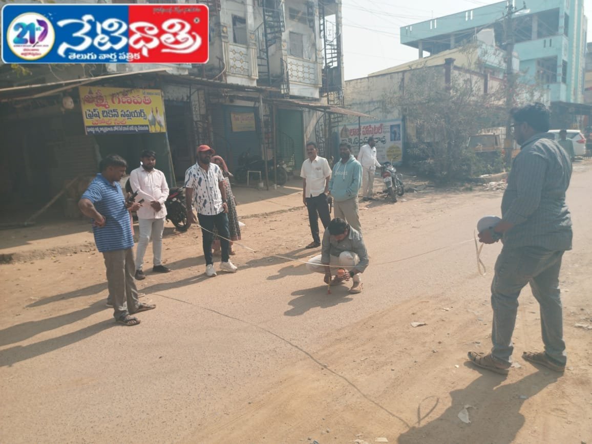 రోడ్డు వెడల్పులో పాల్గొన్న టౌన్ ప్లానింగ్, ఆర్ అండ్ బి అధికారులు