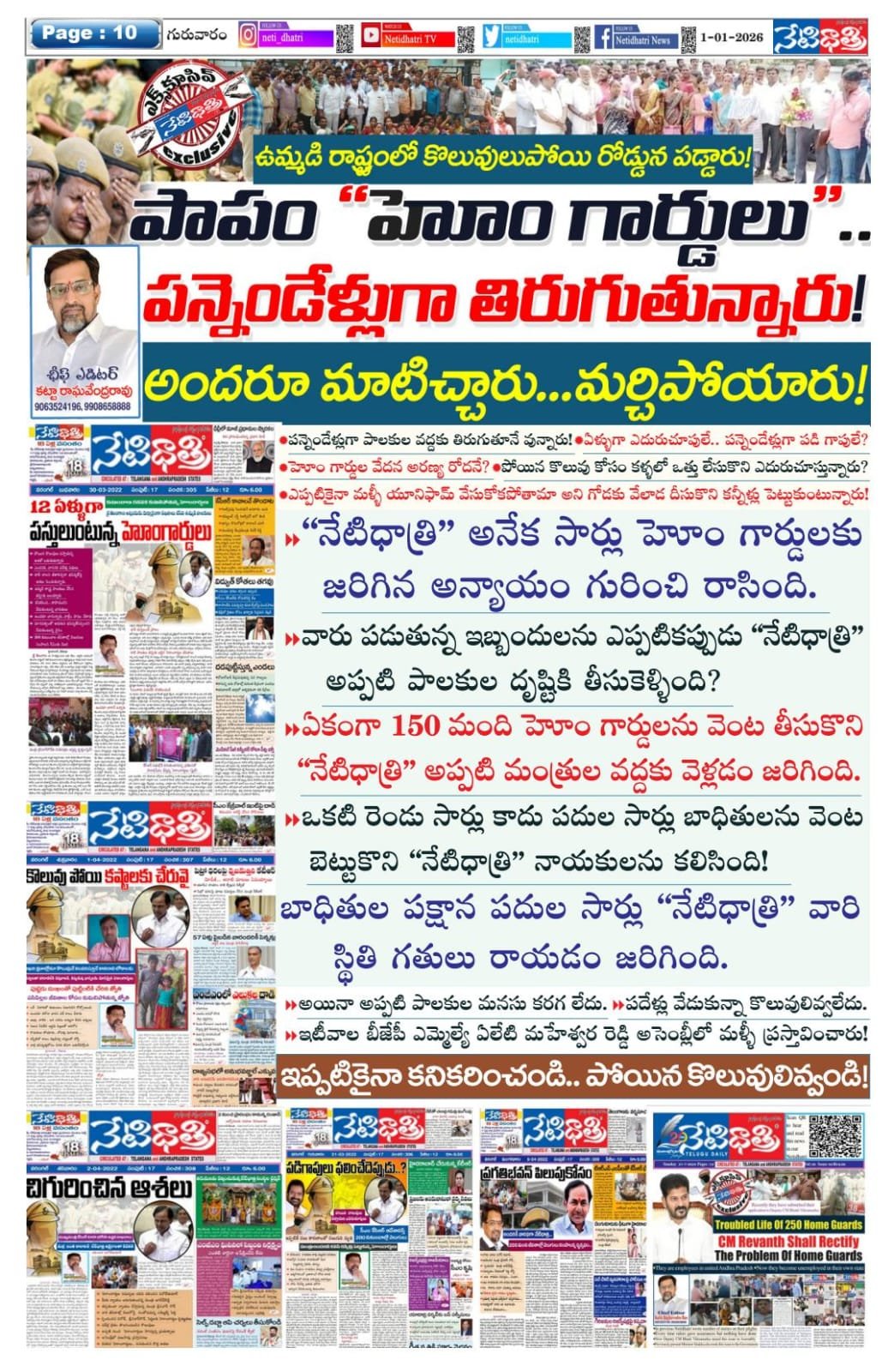 `‘‘నేటిధాత్రి’’ అనేక సార్లు హోం గార్డులకు జరిగిన అన్యాయం గురించి రాసింది.
