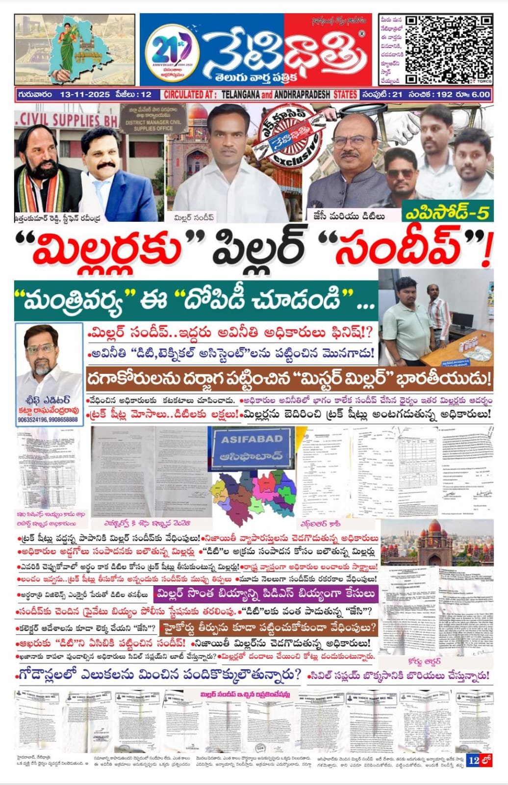 ఒక వ్యక్తి చేసే ధైర్యం వ్యవస్దనే నిలబెడుతుంది. ఆ సమాజాన్ని కాపాడుతుందని చెప్పడంలో సందేహం లేదు. ఎంత కాలం ఈ అవినీతి అక్రమాలు అనుకున్నప్పుడు ఒక్కరు ప్రశ్నించడం మొదలుపెడతారు. ఎంత కాలం దౌర్జన్యాలు అనుకున్నప్పుడు ఒక్కడు నిలబడతాడు. ఎదిరిస్తాడు. అన్యాయాన్ని నిలదీస్తాడు. అక్రమాలను ఎదుర్కొంటాడు. సరిగ్గా ఆసిఫాబాద్కు చెందిన మిల్లర్ సందీప్ అదే చేశారు. తనకు జరుగుతున్న అన్యాయాన్ని అనేక సార్లు గళమెత్తాడు. కాని ఎవరూ వినిపించుకోలేదు. పట్టించుకోలేదు. అందుకే నిలదీస్తే తప్ప ఎదిరించలేమనుకున్నాడు. అవినీతి పరులను పట్టిస్తే గాని సమజానికి మేలు జరగదనుకున్నాడు. ధైర్యం చేశాడు. ఎంతోమందికి ఆదర్శమయ్యాడు. ఇప్పటికీ తాను మరిన్ని సమస్యలు ఎదర్కొవాల్సి వస్తుందని తెలుసు. అయినా తన కోసం కాకుండా, తన వ్యవస్ధ కోసం, తోటి వారి కోసం తాను ఒక్క అడుగు వేస్తే ఎంతోమందికి మేలు జరుగుతందనుకున్నాడు. వ్యవస్దలో చీడపురుగులను ఏరి వేయాలనకున్నాడు. ఇప్పుడు తెలంగాణలోని మిల్లర్లందరికీ సందీప్ పిల్లర్గా మారిపోయాడు. ఇంత కాలం అదికారుల వేధింపులు మిల్లర్లు అనుభిస్తున్నారు. కాని ఎదిరించేందుకు ఎవరూ ధైర్యం చేయలేదు. అవినీతికి అలవాడు పడిన అదికారులకు లొంగిపోతున్నారు. తలెత్తుకు బతకాలంటే నిజాయితీగా వుండాలన్న ఆలోచన వున్న మిల్లర్ సందీప్ మాత్రం సివిల్ సప్లయ్ శాఖకు చెందిన జిల్లా డిటిల మాటలు వినలేదు. అవినీతికి పాల్పడడానికి ఇష్టపడలేదు. అలాంటి సొమ్ము నాకు వద్దనకున్నాడు. డిటిలకు లంచాలు ఇవ్వడానికి నిరాకరించారు. అవినీతి పరులైన ఇద్దరు సివిల్ సప్లయ్ చెందిన అదికారులను పట్టించాడు. ఏసిబి చేత రెడ్ హాండెడ్గా పట్టుకునేలా చేశాడు. దర్జాగా వాళ్లేదే మిల్లర్ సందీప్ వద్ద దాచుకున్న సొమ్ములాగా లక్షలు కావాలంటే ఇస్తే స్తోమత మిల్లర్ వద్ద లేదు. అవినీతి పరుడు సందీప్ అసలే కాదు. అలాంటి వ్యక్తిని వేదిస్తే ఎలా వుంటుందో కూడా ఆ అదికారులకు చూపించారు. అదికారుల అవినీతిలో బాగం కాలేక సందీప్ ఈ నిర్ణయం తీసుకున్నారు. ఇతర మిల్లర్లకు ధైర్యం నింపారు. అయితే సివిల్ సప్లయ్శాఖలో ట్రక్ షీట్ల దందా అనేది అదికారులు సృష్టించుకున్న అవినీతి సమ్రాజ్యంలో ఒక భాగం. శతకోటి దరిద్రాలకు అనంత కోటి ఉపాయాలన్నట్లు లొసుగులను ఆసరా చేసుకొని అవినీతికి పాల్పడడం అలవాటు చేసుకున్నారు. మిల్లర్లకు వడ్లు కేటాంచి , ట్రక్ షీట్లు జారీ చేయాల్సి వుంటుంది. కాని తెలంగానలోని అన్ని జిల్లాల్లో డిటీలు మిల్లర్ల్కు వడ్లు కేటాయించకుండానే ట్రక్ షీట్లు జారీ చేస్తున్నట్లు సమాచారం. ఇది ఒక్క ఆసిఫాబాద్ జిల్లాకే పరిమితం కాదు. అన్ని జిల్లాలలోనూ ఇదే సాగుతోంది. ప్రభుత్వ సొమ్ముకు కన్నం పడుతూనే వుంది. మిల్లర్లు రైతులకు డబ్బులు చెల్లించేందుకు అవసరమై