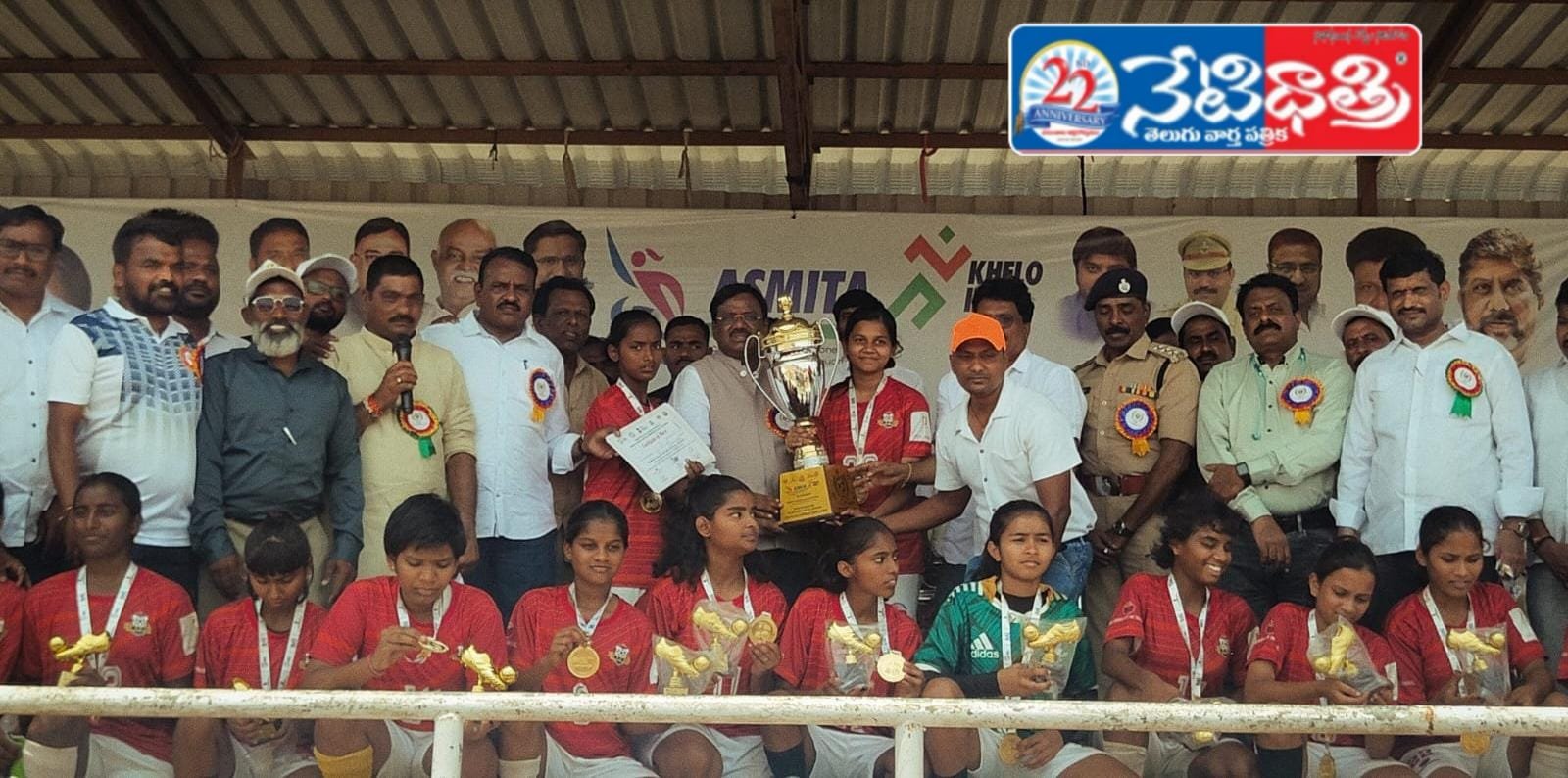 విద్యార్థులు చదువుతో పాటు క్రీడల్లో కూడా రాణించాలని, క్రీడల్లో గెలుపోటములు సహజమని రాష్ట్ర కార్మిక శాఖ, ఉపాధి కల్పన మంత్రి గడ్డం వివేక్ వెంకటస్వామి అన్నారు. రామకృష్ణాపూర్ పట్టణంలోని సింగరేణి ఠాగూర్ స్టేడియంలో గత రెండు రోజులుగా నిర్వహిస్తున్న అస్మిత ఖేలో ఇండియా అండర్-16 ఫుట్బాల్ ఛాంపియన్ షిప్ పోటీల బహుమతుల ప్రధానోస్తవానికి ముఖ్య అతిథిగా హాజరయ్యారు. ఈ పోటిల్లో రాష్ట్రంలోని ఉమ్మడి జిల్లాల జట్లు పాల్గొన్నాయని నిర్వాహకులు తెలిపారు. గెలుపొందిన జట్లకు బహుమతులు అందజేసి మంత్రి శుభాకాంక్షలు తెలిపారు. కరీంనగర్ జట్టు మొదటి స్థానంలో నిలవగా, రెండవ స్థానంలో రంగారెడ్డి జట్టు, మూడవ స్థానంలో ఆదిలాబాద్, నిజామాబాద్ జట్లు నిలిచాయి.