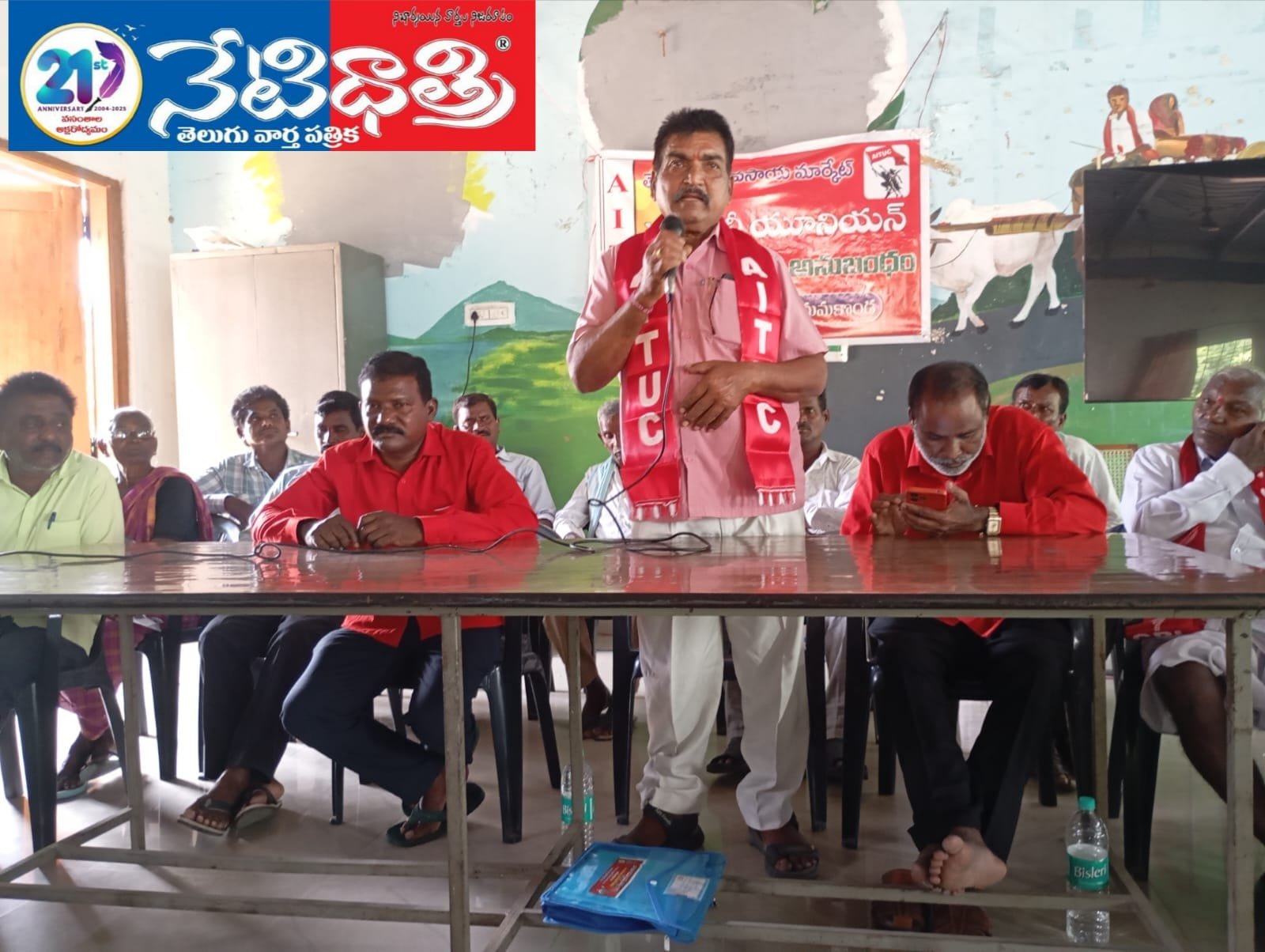 ఉంటున్నారు.మార్కెట్లో ప్రధానంగా మార్కెట్ యార్డ్ లో పనిచేసే వారందరూ రెక్కలు ముక్కలు చేసుకొని డొక్కలు ఎండి చాలీచాలని ఆదాయంతో బతుకుతున్నారని అన్నారు. మార్కెట్లో పనిచేసే హమాలీ దడువాయి,గంపకూలి కార్మికులకు పని భద్రత కల్పించాలని,రైతు ప్రజా కార్మిక వ్యతిరేక నల్ల చట్టాలను రద్దు చేసి నాలుగు కార్మికులకు ప్రమాద బీమా నష్టపరిహారం మూడు లక్షల నుండి 10 లక్షలకు పెంచాలని మార్కెట్లో పనిచేస్తున్న వారందరికీ లైసెన్స్ గుర్తింపు కార్డులు ఇవ్వాలని మరియు కార్మికులందరికీ 3000 యూనిఫామ్ ను ప్రతి సంవత్సరం ఇవ్వాలని,మార్కెట్ యార్డ్ కార్మికుల లైసెన్స్ రెన్యువల్ చేసి 58 నుంచి 60 సంవత్సరాలకు ఇన్సూరెన్స్ వర్తించేలా చర్యలు తీసుకోవాలన్నారు.మార్కెట్ యార్డుల పాలకవర్గంలో కార్మికుల నుంచి ఇద్దరికీ డైరెక్ట్ గా అవకాశం కల్పించాలని యార్డులో క్యాంటీన్ మంచినీటి సౌకర్యం కల్పించాలని డిమాండ్ చేశారు.ఈ యొక్క సమావేశంలో ఏఐటీయూసీ ప్రధాన కార్యదర్శి జక్కు రాజ్ గౌడ్,ఏ ఐ టి యు సి హనుమకొండ జిల్లా వర్కింగ్ ప్రెసిడెంట్ లంక దాసరి అశోక్,కార్మిక నాయకులు కోడే పాక ఐలయ్య,కోకిల శంకర్, కోట యాదగిరి,రేణిగుంట రాజయ్య,బొట్ల భద్రయ్య,మోరే రవి,ధార్వా యూనియన్ అధ్యక్షులు ప్రభాకర్,గంపకూలి లచ్చమ్మ తదితర కార్మికులు నాయకులు పాల్గొన్నారు.