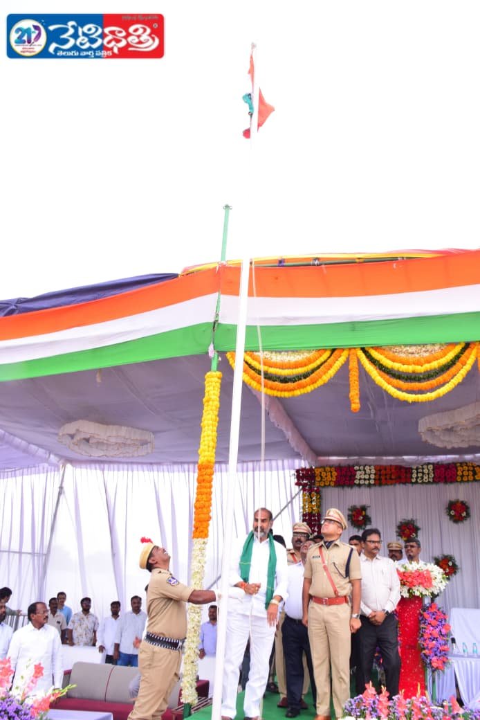 ముఖ్య అతిథిగా హాజరై జాతీయ జెండాను ఎగురవేసిన ప్రభుత్వ విప్, వేములవాడ ఎమ్మెల్యే ఆది శ్రీనివాస్