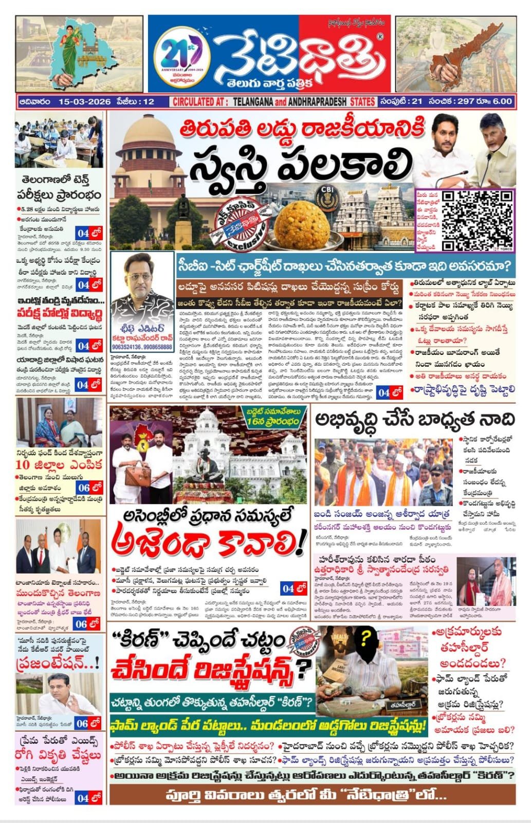 ఆంధ్రప్రదేశ్ రాజకీయాల్లో వేరే అంశమే లేనట్టు తిరుపతి లడ్డూ చుట్టూనే ఇవి తిరుగుతుండటం విచిత్రమనిపిస్తోంది. ముఖ్యంగా హిందువుల మనోభావాలను కేవలం హిందూ నాయకులే దెబ్బ తీసేలా వ్యవహరిస్తుండటం బాధాకరంగా పరిణమిస్తోంది. కలియుగ ప్రత్యక్ష దైవం శ్రీ వేంకటేశ్వర స్వామి వారిని దర్శించుకున్న భక్తులు ఆనందంతో తన్మయత్వంలో మునిగిపోతారు. తిరుమ ల అంటేనే ఒక విధమైన అలౌకిక ఆనందం కలుగుతుంది. ఇన్ని వందల సంవత్సరాల కాలం లో ఎన్నో పరిణామాలు జరిగినా చిద్విలాసంగా శ్రీవేంకటేశ్వరుడు కలియుగ ధర్మాన్ని వీక్షిస్తూ దుష్టులను శిక్షిస్తూ సద్వర్తనులను కాపాడుతూ అందరికీ ఇలవేల్పుగా వెలుగుతున్నారు. అటువంటి స్వామివారి ఆలయాన్ని కూడా రాజకీయాల్లోకి లాగి రచ్చరచ్చ చేస్తూ, స్వప్రయోజనాలు కాపాడుకునే కుచ్చిత వ్యవహారశైలి ఇప్పుడు ఆంధ్రప్రదేశ్ రాజకీయాల్లో కొనసాగుతోంది. రాజకీయ ఆధిపత్య వైకుంఠపాళిలో భక్తులు అతిపవిత్రమైన స్వామివారి ప్రసాదంగా భావించే లడ్డూను బజార్లో కి లాగి యదేచ్ఛగా దాని నాణ్యతను, దానిపై భక్తులకున్న అచంచల నమ్మకాన్ని, భక్తి ప్రపత్తులను సమూలంగా దెబ్బదీసే ఈ హనన రాజకీయాలు హిందువుల హదయాలను శూలాలుగా తొలిచేస్తున్నాయి. రాజకీయాలు చేయడం సహజమే కానీ, మరీ ఇంతటి నీచంగా భక్తుల మనోభా వాలను దెబ్బతీసే విధంగా అవి దిగజారిపోవడం ఎంతమాత్రం సమర్థనీయం కాదు. ఒక ఆట లో క్రీడాకారుల సామర్థ్యంపై విజయావకాశాలుంటాయి. కొన్ని సందర్భాల్లో చిన్న పొరపాట్లు టీమ్ ఓటమికి కారణమవుతుండటం కూడా మనకు తెలుసు. అదేవిధంగా రాజకీయాల్లో కూడా గెలుపోటములు సహజం. నాయకుడి పనితీరును బట్టే ప్రజలు ఓట్లేస్తారు తప్ప, అసమర్థ నాయకుడిని ఏరికోరి ఏ ఓటరు తన నెత్తిన పెట్టుకోవడానికి ముందుకు రాడు. ఈ నేపథ్యంలో అధికారం లో ఎవరు వున్నా, తమ పనితనాన్ని చూపి ప్రజల మనసును గెలుచుకోవాలి తప్ప, వారి సెంటిమెంట్ను బలంగా దెబ్బకొట్టి ఓటర్లను తనకు అనుకూలంగా మలచుకోవాలనుకోవడం అత్యంత దారుణ రాజకీయమని చెప్పక తప్పదు.
