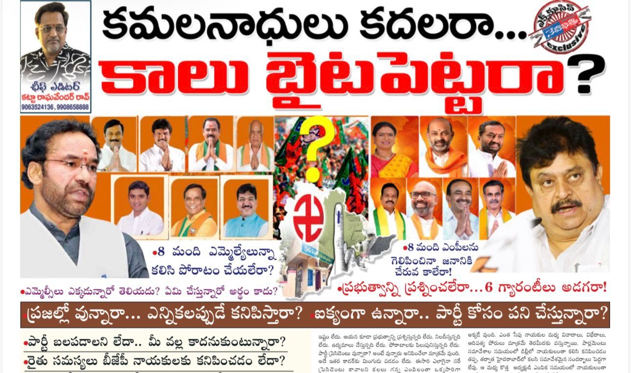 గత బిఆర్ఎస్ హాయాంలో వున్న దూకుడులో బిజేపికి పదిశాతం వున్నా, ఈ పాటికి రాష్ట్రంలో మరింత బలపడే అవకాశం నూరుశాతం వుండేది. కాని ఎందుకో బపడాలన్న కోరిక నాయకుల్లో కూడా కనిపించం లేదనిపిస్తోంది. వారి వ్యాహారశైలి జనానికి అలాగే తోస్తోంది. పార్టీలో నాయకులంతా నాకంటే ఎవరు ఎక్కువ..నాకేం తక్కువ! అనే ఆలోచనల్లోనే అందరూ వున్నారు. ఇవే కమలంలో నేతల మధ్యకలతలు సృష్టిస్తున్నాయని, ఆదిపత్యాలు పొడసూపేలా చేస్తున్నాయంటున్నారు. ఇక బిజేపి అగ్రనాయకుల మధ్య ఆదిపత్యాలలో గాని, అధికార దర్పంలో గాని చేసుకునే విమర్శల్లో దాపరికాలేమీ కూడ కనిపించడం లేదు. వారు తమకు పడని సొంత పార్టీ నాయకుల మీద చేస్తున్న విమర్శల్లో ఎక్కడా షశబిషలు కనిపించడం లేదు. నిజం చెప్పాలంటే తెలంగాణలో వున్న బిజేపి ఎనమిది మంది ఎంపిలంతా ఒక్కతాటిమీద లేరు. ఇది స్పష్టం. పెదవుల మీద ప్లాస్టిక్ పువ్వలు విరిసినంత మాత్రనా అవి నవ్వులు కావు. వారి మధ్య వున్నది ఆప్యాయత కాదు. గౌరవం అంతకన్నా కాదు. కేవలం పది మందిలో పలుచన కాకుండా చూసుకునే జాగ్రత మాత్రమే..మీడియా కంట పడకుండా జాగ్రత్తపడడం మాత్రమే. ఇక గతంలో ఎన్నడూ లేనట్లు ఎమ్మెల్యేలు కూడా అలాగే తయారయ్యారు. ఎంపిలకు ఒకరికంటే ఒకరికి పడడం లేదంటే, ఎమ్మెల్యేలు మేమేం తక్కువ తిన్నామా? అన్నట్లే వుంది. ఇక్కడ ఎమ్యెల్యే మధ్య ఆధిపత్యం కనిపించడం లేదు? కాని ఎడమొహం, పెడమొహంలా వుంటున్నారు. అసలు ఒకరికొకరు పరిచయం లేనట్లుగానే వుంటున్నారు. పార్టీ కార్యాలయానికి వచ్చి ఏనాడు మీడియా సమావేశాలు కూడా పెద్దగా ఏర్పాటు చేసిందిలేదు. ప్రభుత్వం మీద మాట్లాడుతున్నది లేదు. ప్రజా ప్రభుత్వం ఎన్నికల హమీలను అమలు చేయాలని డిమాండ్ చేస్తున్నది లేదు. కాంగ్రెస్ పార్టీ ఎన్నికల ముందు ఇచ్చిన ఆరు గ్యారెంటీలు ఏమయ్యాయని అడిగే ఎమ్మెల్యేనే లేకుండాపోయారు. అసలు వాళ్లంతా ఎక్కడుంటున్నారో కూడా ఎవరికీ తెలియదు. జూబ్లీహిల్స్ ఎన్నికల్లో ప్రచారం పెద్దగా చేసింది లేదు. అభ్యర్ది ఎంపికపై కూడా ఎవరూ స్పందించింది లేదు. సీటు గెలవాలన్న ఆలోచన ఎవరూ చేయలేదు. జూబ్లీహిల్స్ ఎన్నికల ప్రచారంలో ఎవరు పాలుపంచుకున్నారో..ఎవరు రాలేదో కూడా తెలియని పరిస్ధితి నెలకొని వుంది. మొత్తం మీద పార్టీ ప్రెసిడెంటు రామచంద్రరావు వైపే వేళ్లన్నీ చూపిస్తున్నాయి? ఆయన పార్టీ అద్యక్షుడు కావడం పార్టీలో చాలా మందికి ఇష్టం లేదు. ఆయన కూడా ప్రభుత్వాన్ని ప్రశ్నిస్తున్నది లేదు. నిలదీస్తున్నది లేదు. ఉద్యమాలు చేస్తున్నది లేదు. పోరాటాలకు పిలుపునిస్తున్నది లేదు. పార్టీ ప్రెసిడెంటు వున్నారా? అంటే వున్నారు అనిపించేలా మాత్రమే వుంది. అదే ఇతర కాడర్కు మింగుడు పడడం లేదు. ఈసారి ఎలాగైనా సరే ప్రెసిడెంటు కావాలని కలలు గన్న ఎంపిలంతా ఒక్కసారిగా చల్లబడిపోయారు.
